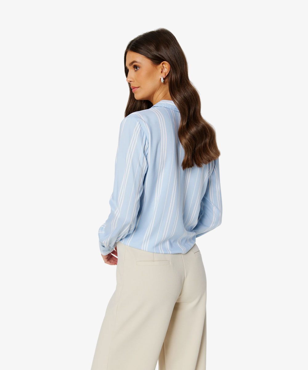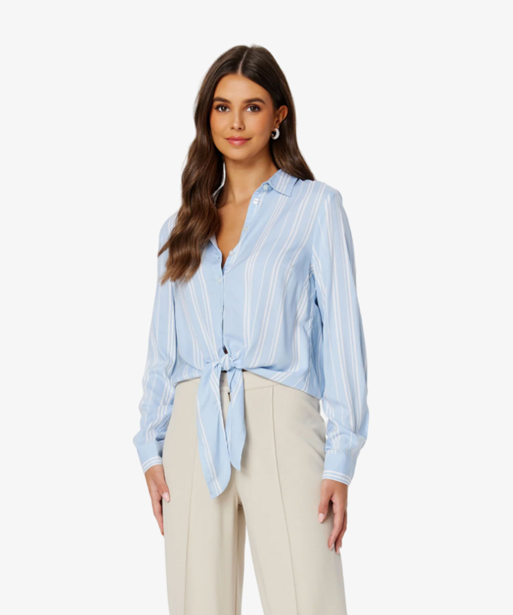 1 review for Women Blue & White Relaxed Striped Casual Shirt Tie-up